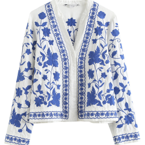 Sapphire’ Floral Embroidery V-Neck Shirt