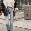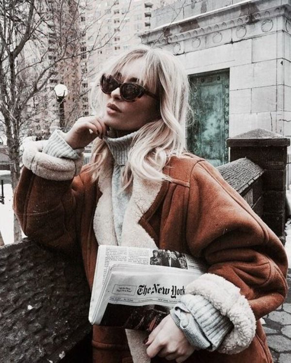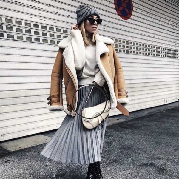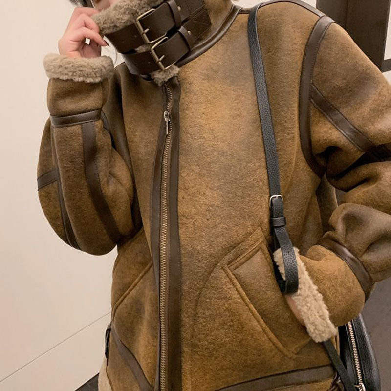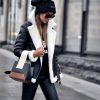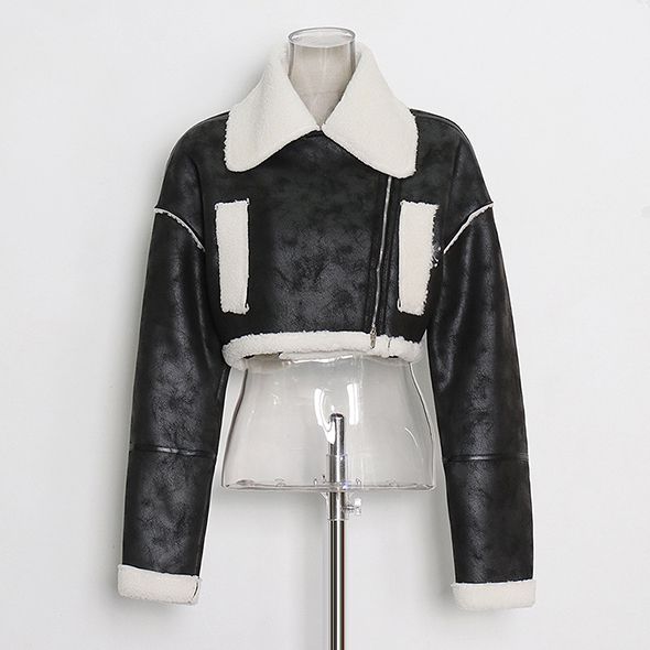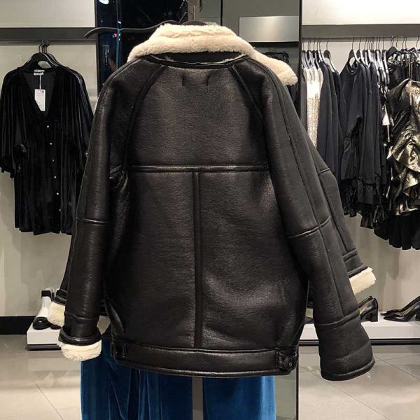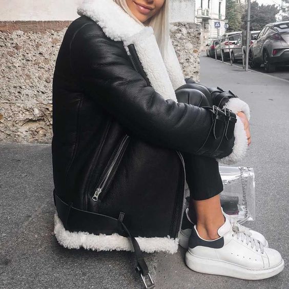 Design: Turn-down Turtle Neck White Fur Collars, Full Lined Shearling, Full Zipper, Long Sleeves, Moto & Bike style, Oversized and Bomber