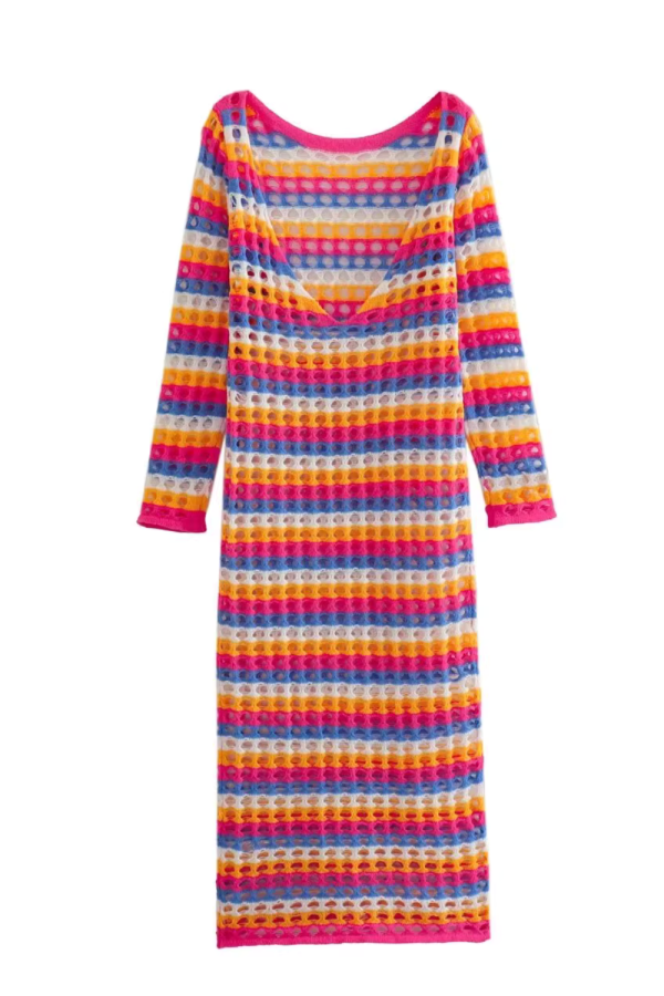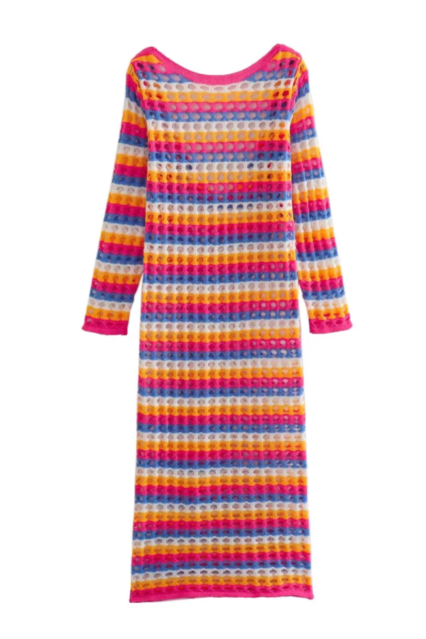 Goodnight Oversizedknitsweater Crochet Stripe Long-Sleeved Dress