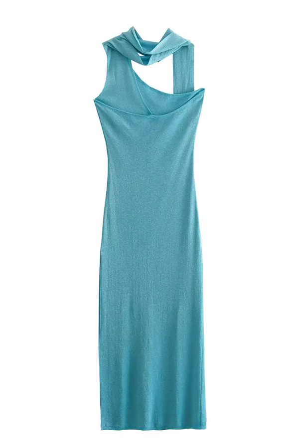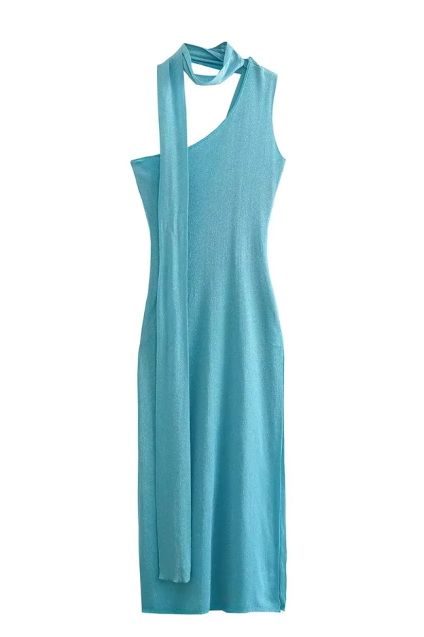 Goodnight Oversizedknitsweater Halter-Neck One Shoulder Slit Dress