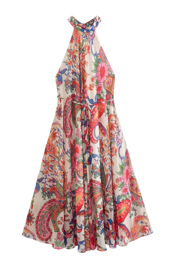 Goodnight Oversizedknitsweater ‘Sapphire’ Floral Sleeveless Halter Dress