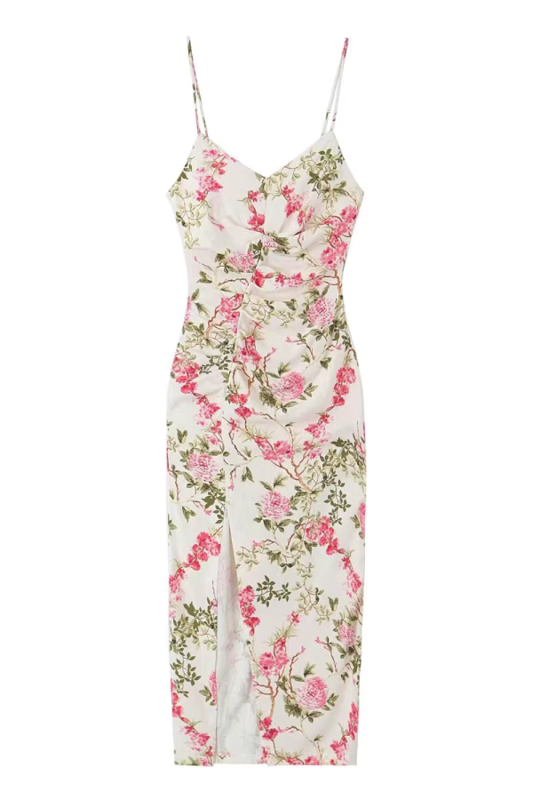 Sapphire’ Floral V-Neck Front Slit Midi Dress